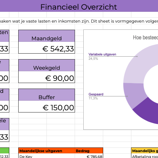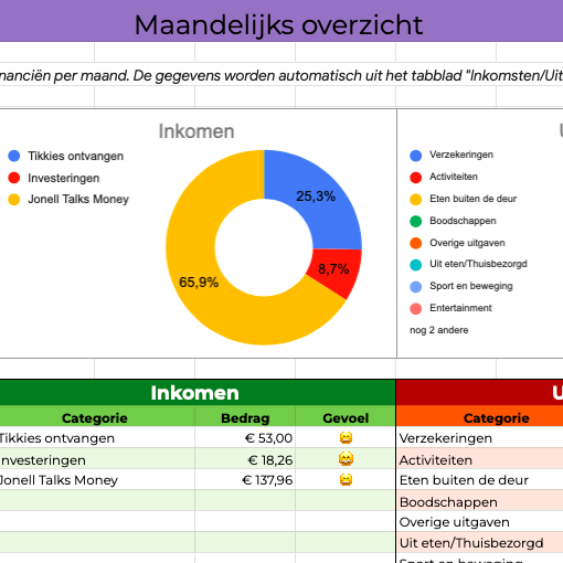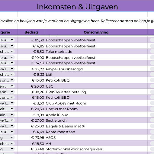 Als je niet weet wat er elke maand in komt en weer uit gaat, dan weet je ook niet wat je goed doet en waar verbetermogelijkheden liggen. In de planner kan je daarom handig je inkomsten en uitgaven invoeren, zodat je een overzichtelijk beeld hebt van jouw uitgavenpatroon.